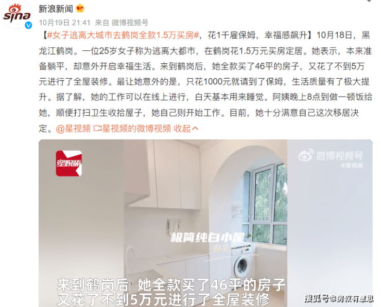 今天,25岁女孩逃离大城市后,在鹤岗1.5万全款买房引起全网热议。