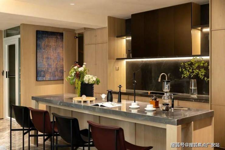 与之相邻的U型大厨房,则巧妙围合出家的温度中心。流畅的动线让家人可在此协作,朋友可在此互动。这里既能从容应对中式的烟火气,也能满足西式烘焙的精致仪式感,诠释着当代东方家庭的待客之道。
