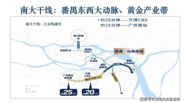 自驾方面,周边有利丰大道、南大干线、广台高速等干线。南大干线全线通车,从项目开车去万博、南站、大学城或琶洲,基本都能在半小时内抵达。
