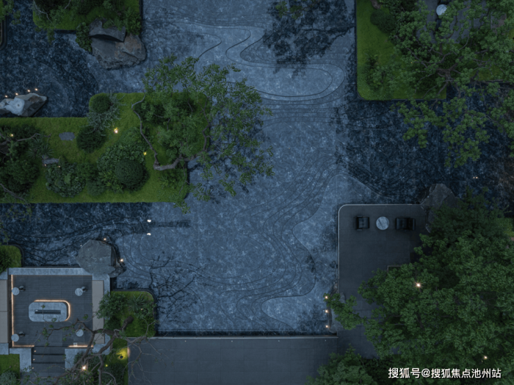 我们来看中庭园路场景营造的普遍画面: