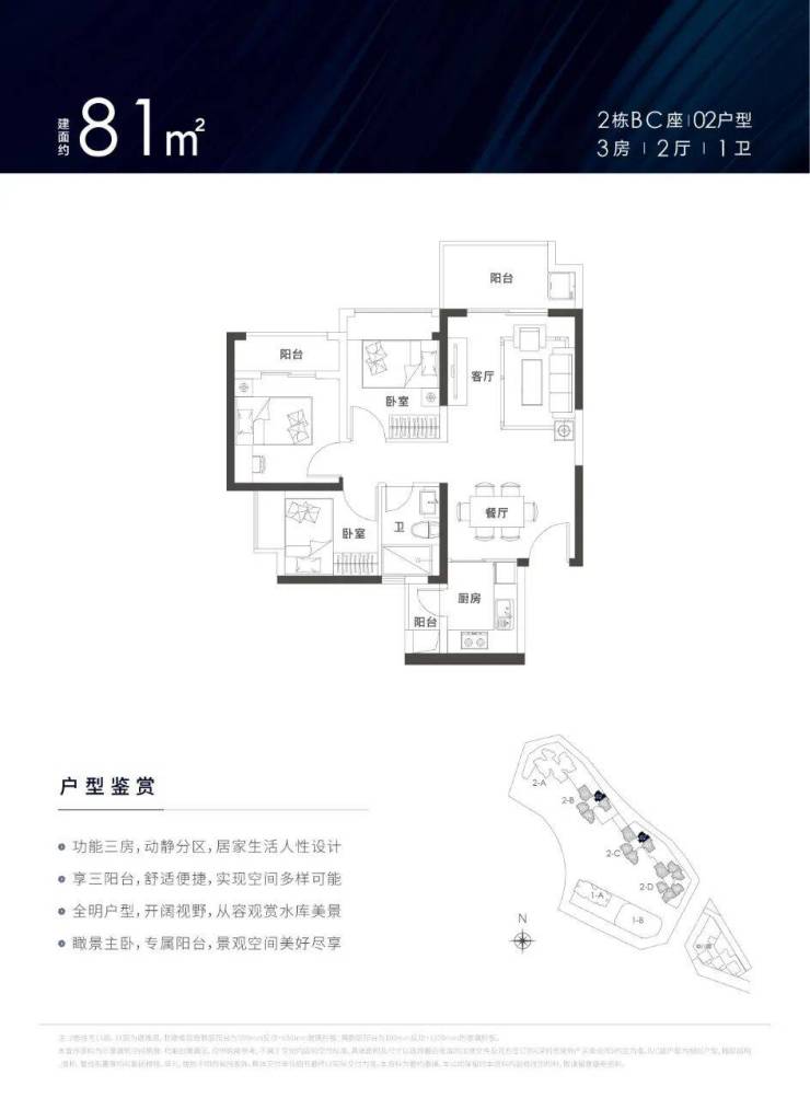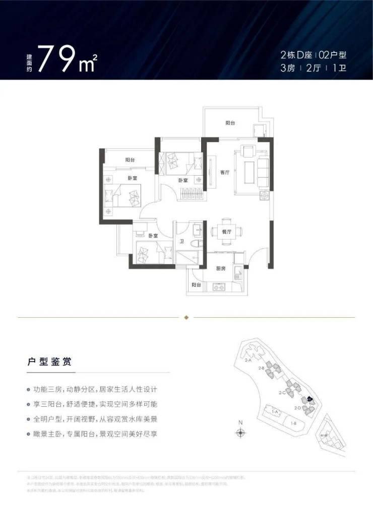 建面约78-129㎡3-4房户型,南北通透,3房3.5~3.7m,4房3.8~4.2m,罕见阔绰开间,客厅、厨房、卧室三阳台多飘窗,超高使用率。
