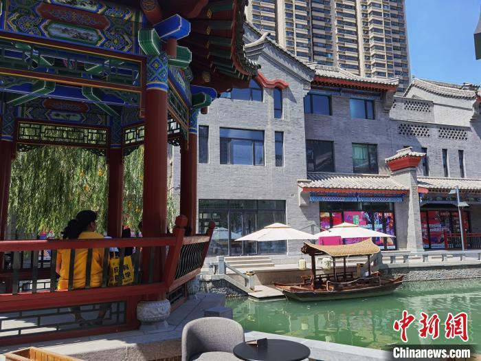 7月22日,兰州几千年文化印记和明清风格建筑相融合的兰州老街,游人在凉亭内纳凉。 杨娜 摄