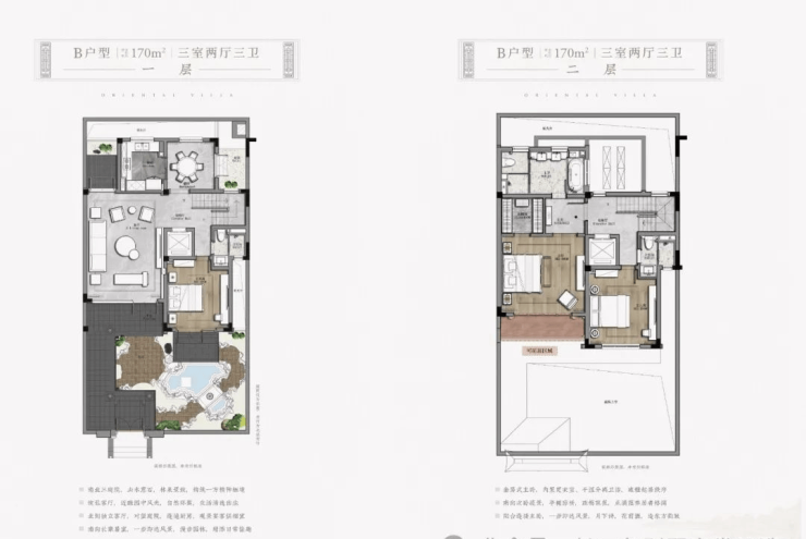 联合GOA大象设计公司(原绿城东方设计院的凌建先生的团队),通过降低建筑密度和容积率(容积率为0.614,建筑密度30%,以中式建筑中的江南民居形态创作出特有的两层合院产品)。