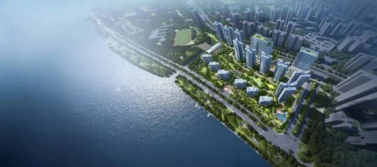 而为了更好地与这片江景相融,项目整体抬高15米抬高,形成天然退台式大园林,引江入园。