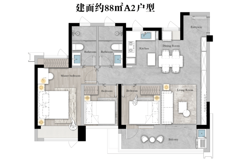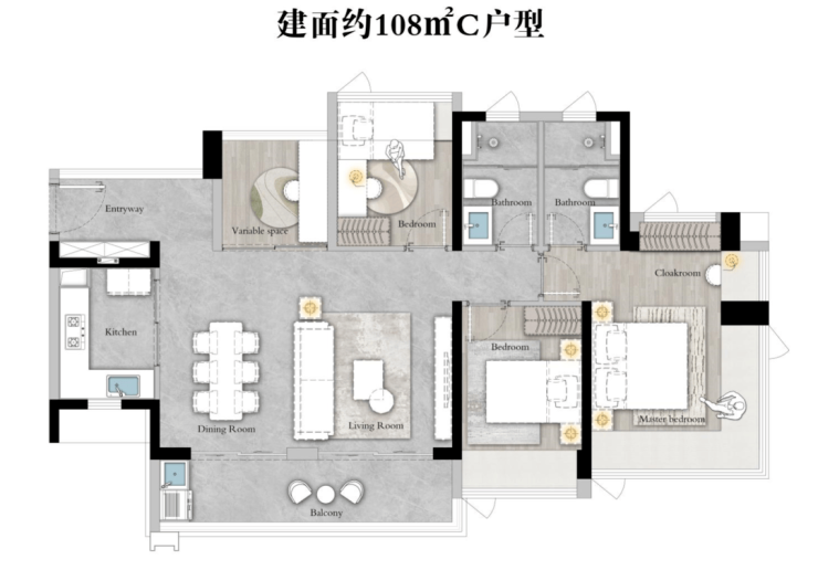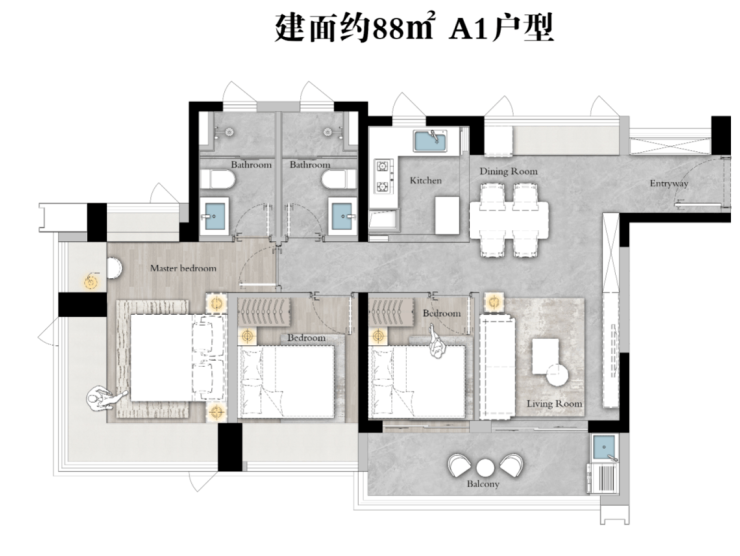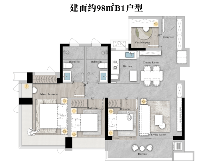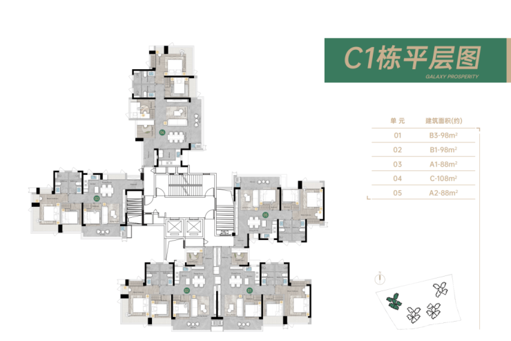 产品以主打刚需,有88㎡、98㎡、108㎡三至四房