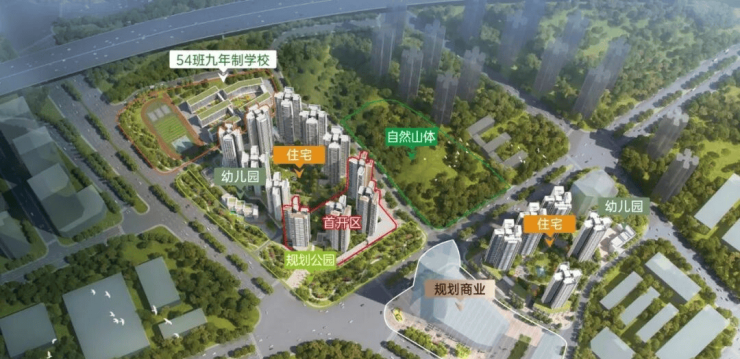 【配建设施】54班九年一贯制学校、双幼儿园、规划公园、商业