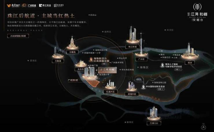 秀珠实城发·江湾和樾坐落广州五大主城区之一的海珠区,立于珠江后航道,坐拥千年羊城繁华;地处海珠新活力文商旅融合圈之内,低密滨江生活,主城热土,天生瞩目。