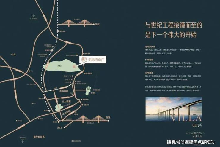 项目面情侣北路与港湾大道,紧邻即将落成的港珠澳大桥,20分钟直达澳门,40分钟直通香港,拟建中的深中大桥约1小时抵达深圳,交通便利。 港珠湾山庄仅61户,为独栋、联排、双拼别墅。