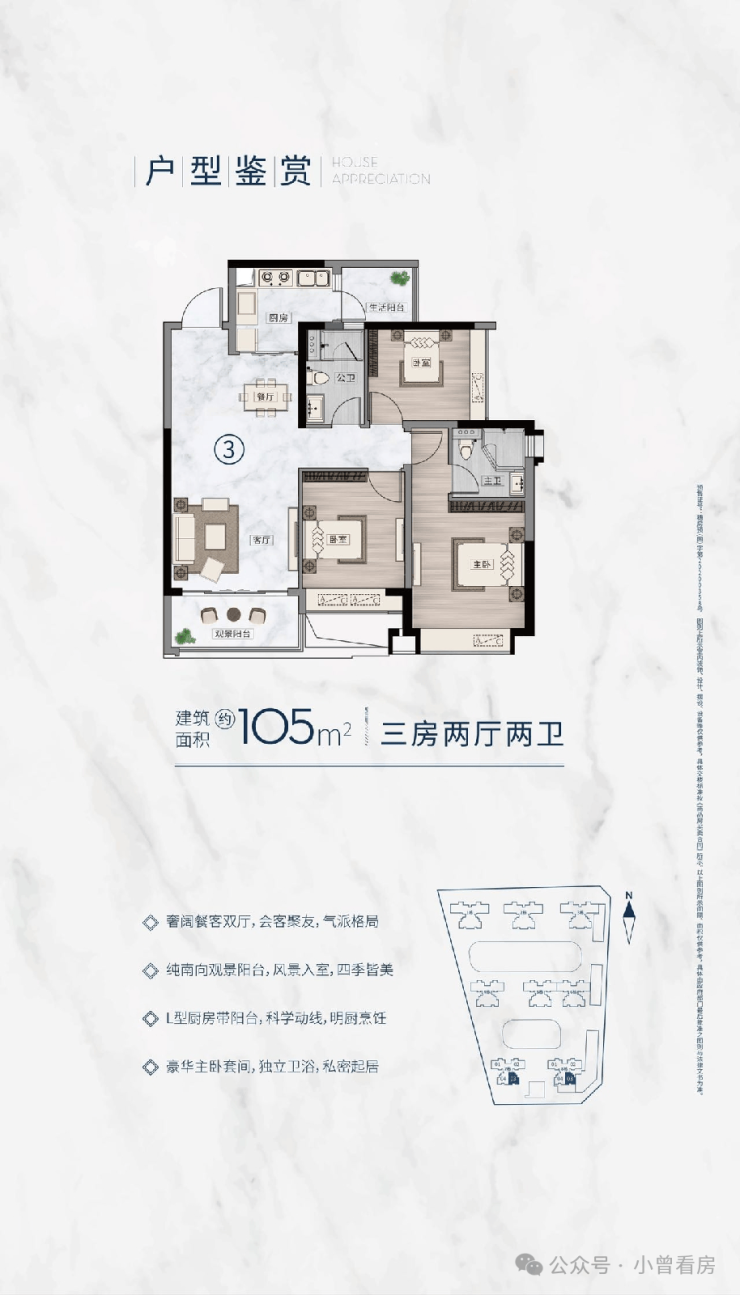 全T4低密度滨江地铁洋房约105-125㎡三至四房,纯南北向,两梯四户