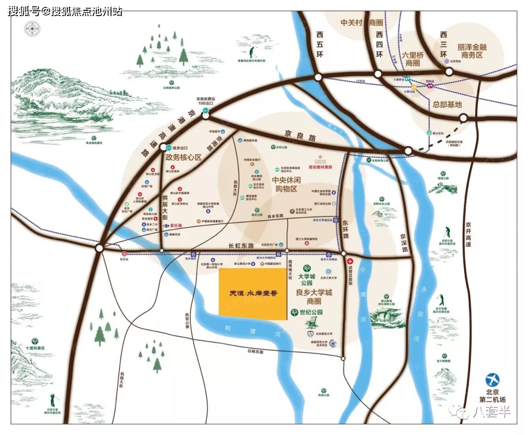 天恒水岸壹号地处良乡大学城商圈,是南城计划中一个比较重要的功能区,目前已包含6所大学,社会科学院的研究生院,北京理工大学、北京工商大学等等,部分学校校区还在扩建;