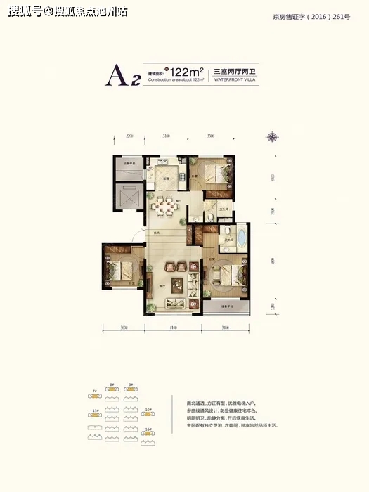 A2偶数层-3室2厅2卫-122.0㎡,卧室:南向主卧,保证充足采光。卫生间:干湿完好分区,方便实用。餐厅:客厅餐厅分而不离,简洁便利。这个户型总价约610万元/套。
