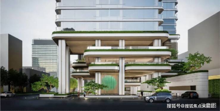 项目以广式骑楼为灵感,参考垂直花园理念,打造约18-30m高的垂直立体花园一方面实现了观景最大化,另一方面在保留城市基底和公共空间的同时将度假式生活引入日常,打造“赏、观、游、栖、归引”六大卓越生活场景为现代豪宅树立全新的生活范本。