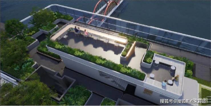 渗透式建筑景观规划——在户外空间融入自然元素的无障碍设计、临近建筑周边的会客厅场地,形成自然景观由外至内的延伸,让滨江樾业主在享受会客厅的休闲时光时,能与城市核心的自然之美,不经意相逢。