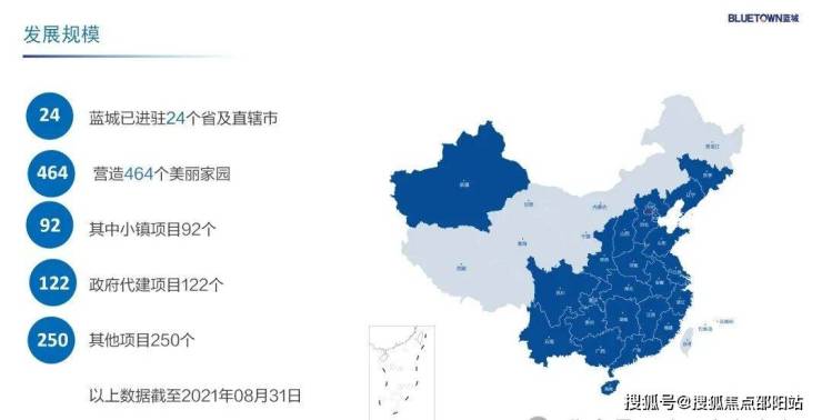 经过20余年的探索、实践和发展,从绿城到蓝城,从重资产投资到轻资产运营再到小镇开发营造,蓝城集团逐步实现产品营造到生活服务的战略转型。蓝城作为“美好生活综合服务商”,始终以一颗真诚之心,在利他的商业模式下,不断改善生活、提高生活、引领生活、创造生活。截至2021年8月底,蓝城已进入全国24个省及直辖市,并开始布局海外,营造了464个美丽家园,其中小镇项目达到92个。