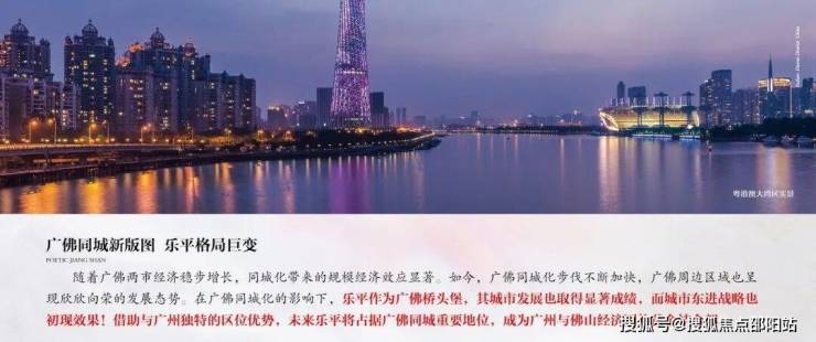 粤港澳大湾区作为全国经济最为发达的城市群之一,正朝着建成国际一流湾区和世界级城市群的方向蓬勃发展。广佛两城位于湾区核心位置,同城化步伐不断加快,呈现欣欣向荣的发展态势。项目所在乐平作为广佛同城桥头堡坐享区域发展红利。