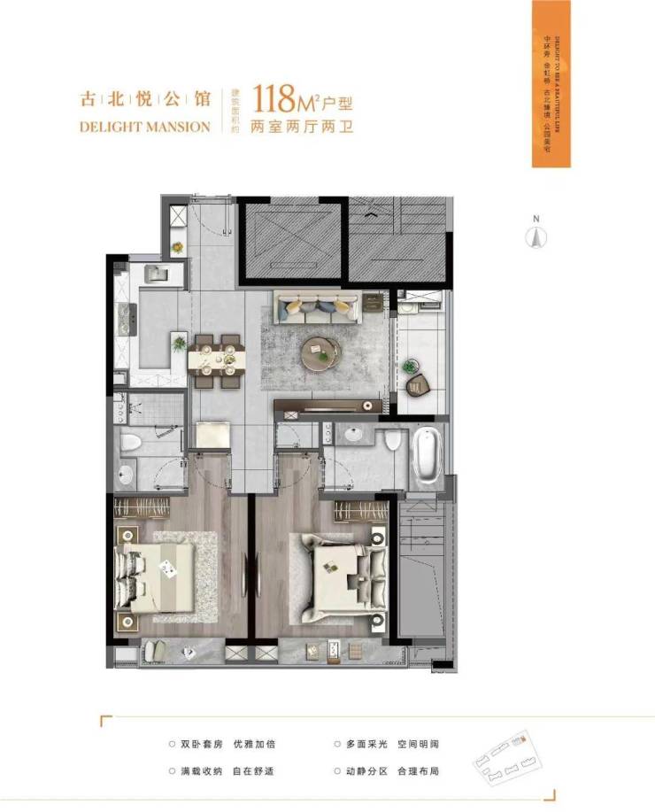 建筑面积约118㎡的户型: