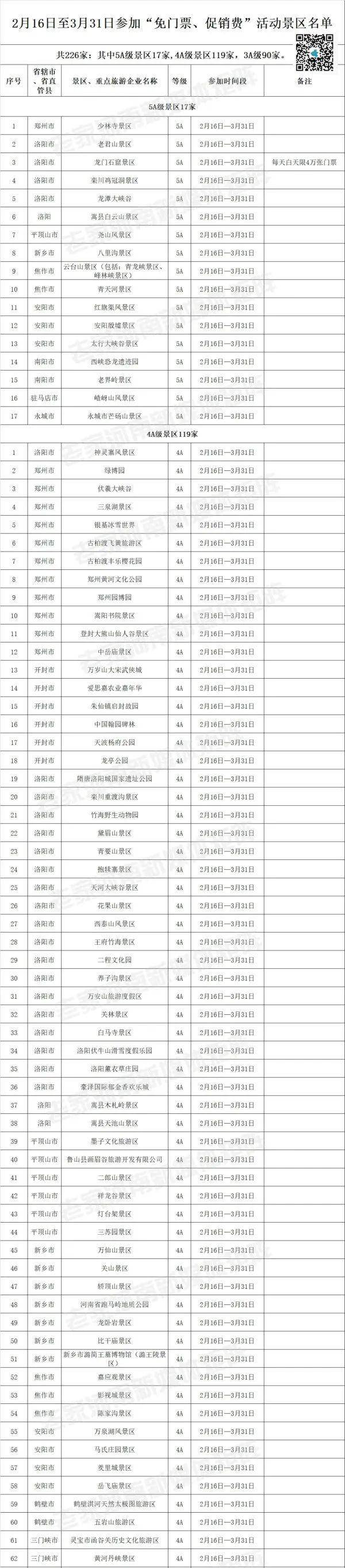 河南226家A级景区向全国人民免门票(附免门票景区名单)