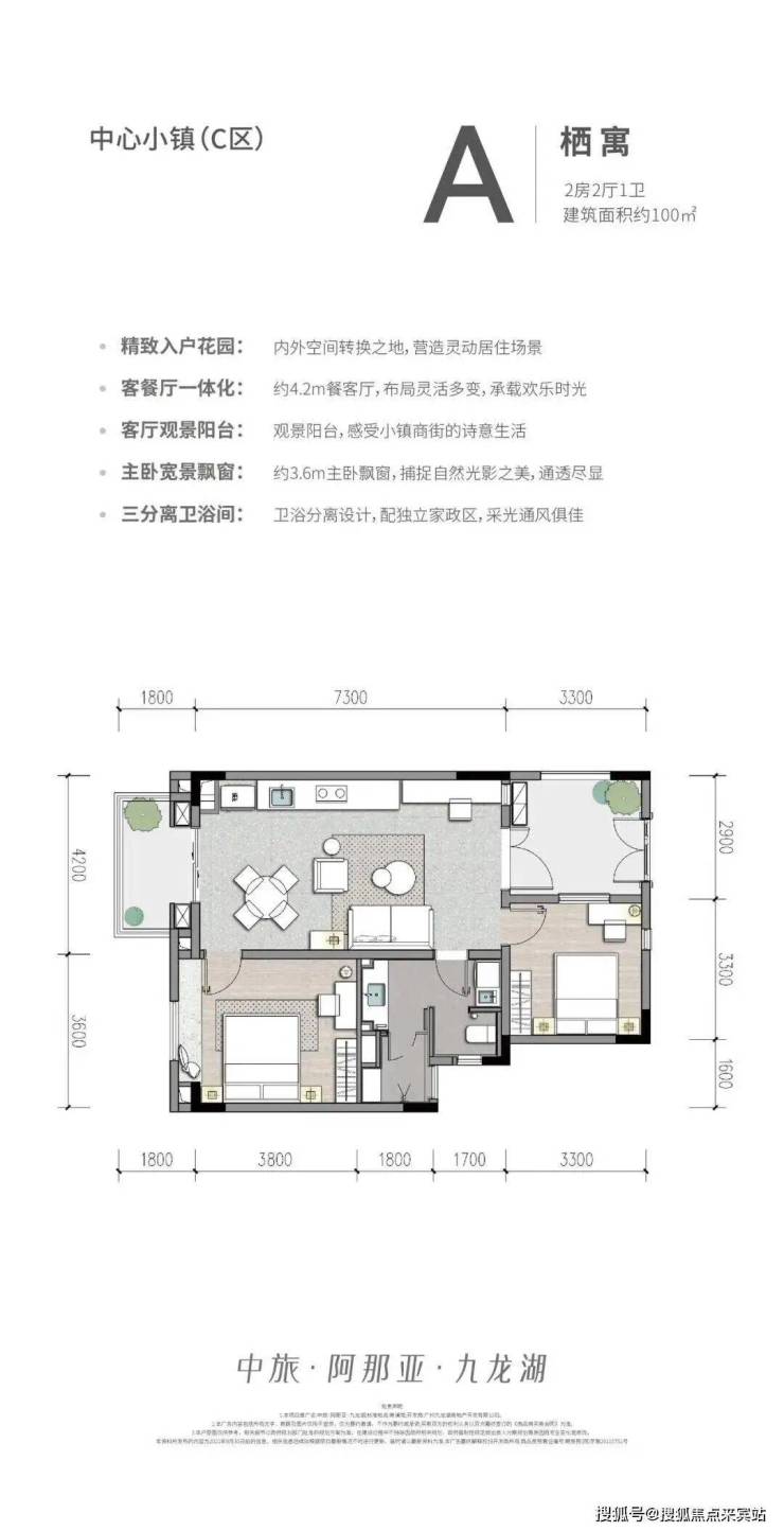 ✮产品面积:公寓A户型-100方(2房2厅1卫)