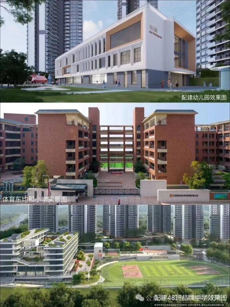 项目首开地块旁规划有一所36班初中和一所9班公立幼儿园,目前都已经封顶,将于2026年9月开学,初中已确定引入天外办学。项目目前已经确定业主子女可按就近入读政策,满足人户一致即可入读体育东教育集团均和小学和天外,以及执信中学也可以参与摇号。
