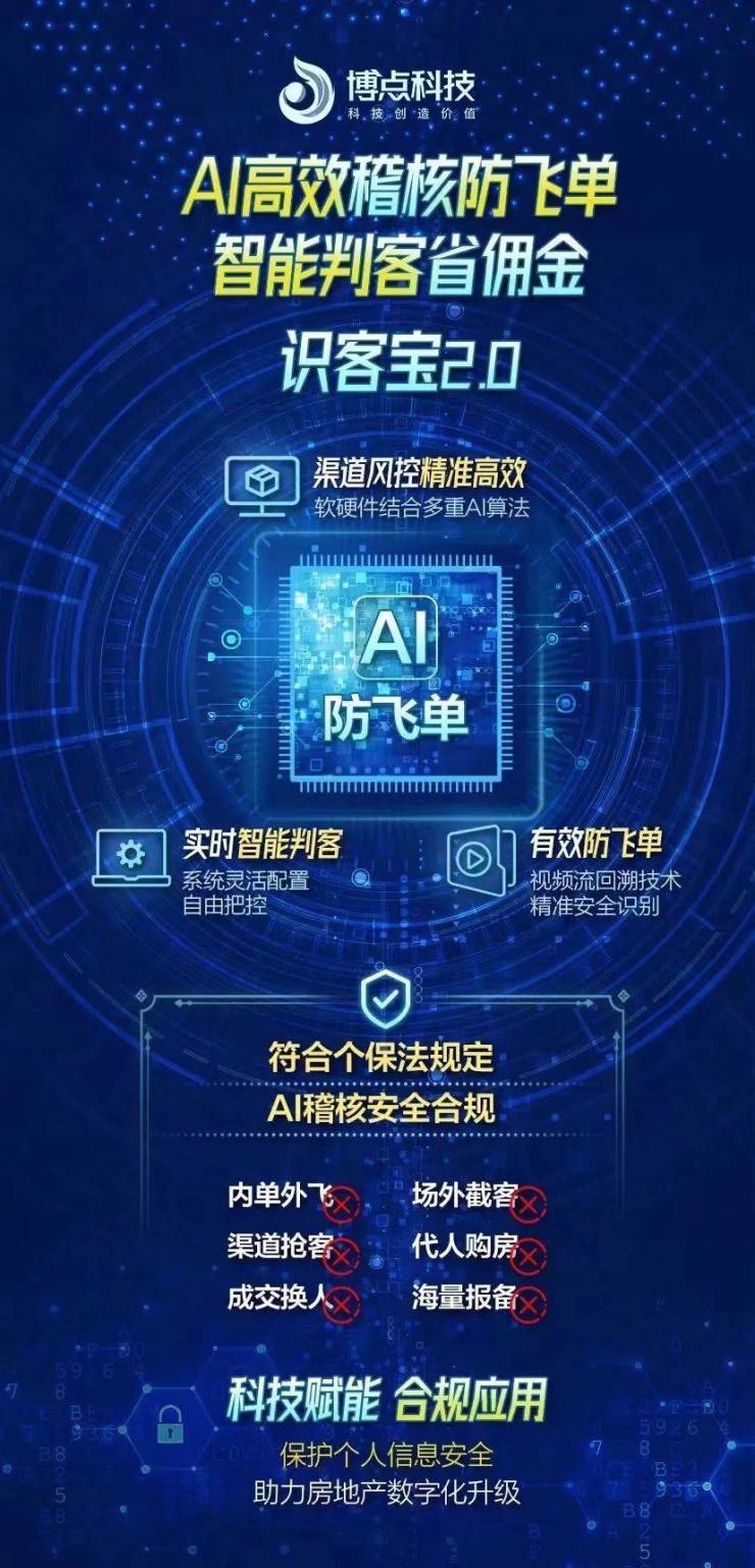 原来,博点科技早在《个人信息保护法》征求意见阶段,就率先着手进行渠道风控产品的迭代升级,推出了“识客宝2.0”, 既能合法合规地对来访、认证、飞单、节佣情况实时监控,又能一键上传结佣单智能判断渠道风险。