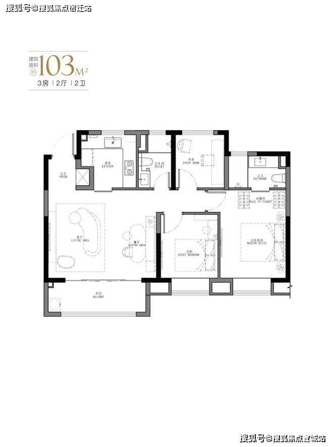 产品:103㎡、107㎡的三房两厅两卫及123㎡、129㎡的四房两厅两卫.