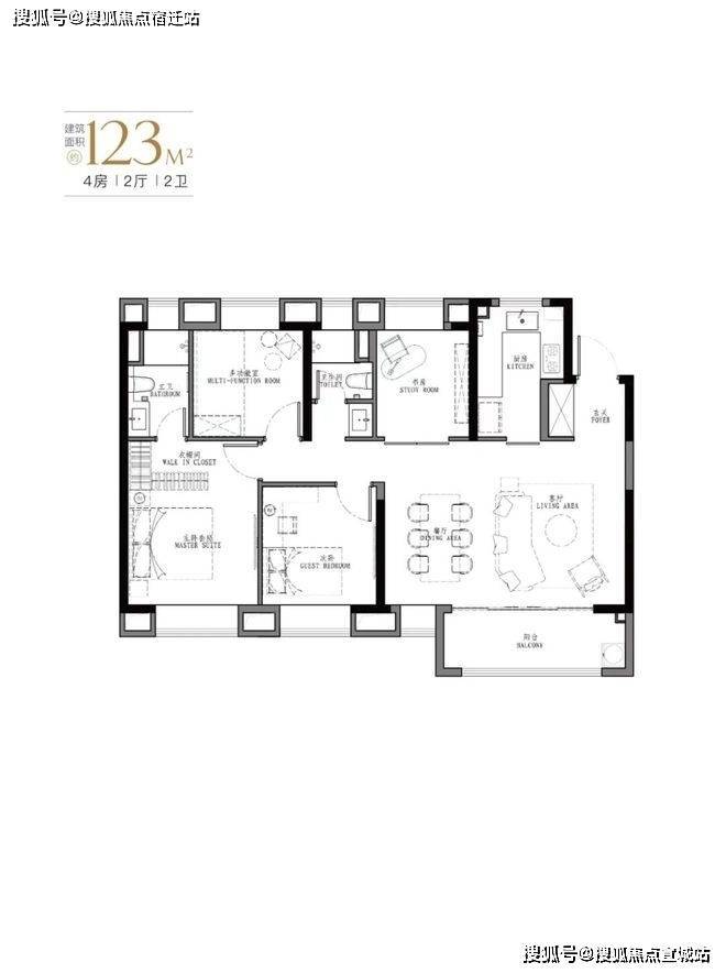 【星尚·观澜世嘉】将推出4种户型,103㎡、107㎡的三房两厅两卫及123㎡、129㎡的四房两厅两卫,共计550套可售住宅.以下是户型分布图:
