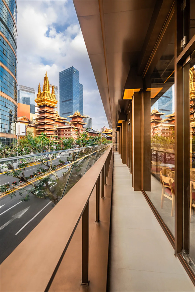 设计团队GHIGOS 与锋思城界经过深度融合东西方文化精粹,在一中一西、一佛一俗中寻求和谐,提出源于西方功能主义的“静安阳台”和东方“礼佛之心”两个策略。
