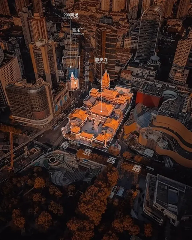 上海海派文化发源地和上海的“心脏”区位的加成,为九百商场带来浓厚底蕴的同时,毗邻静安寺的礼佛之地与十里洋场在空间特质上的冲突、中西建筑风格的不平衡、新旧建材带来的城市界面感受上的矛盾等,为项目改造在多元素的碰撞下,带来创新的可能。