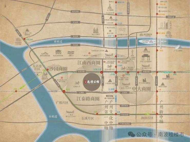 中冶·逸璟公馆坐落于广州市海珠区核心地段,地处宝岗大道与江燕路交汇处,紧邻广州塔、琶洲国际会展中心等地标。项目所在的“三横五纵”交通网络(昌岗路、江南大道等主干道)及地铁2号线、8号线、在建11号线(2024年通车),使其20分钟内可达珠江新城、金融城等核心商圈,30分钟通达白云机场,区位优势显著。