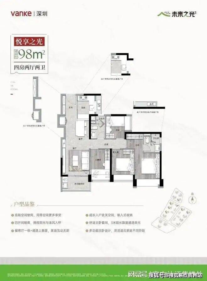万科未来之光主要打造墅区品质刚需、刚改户型,项目具有一定的地理位置优势,距离前海、宝安等核心板块都不远;开盘优惠幅度拉满,在一定程度上给购房者让利;户型设计实用率颇高,73㎡的三房一卫、80㎡的三房两卫、98㎡的四房两卫,让购房者以尽可能低预算实现置业一步到位。