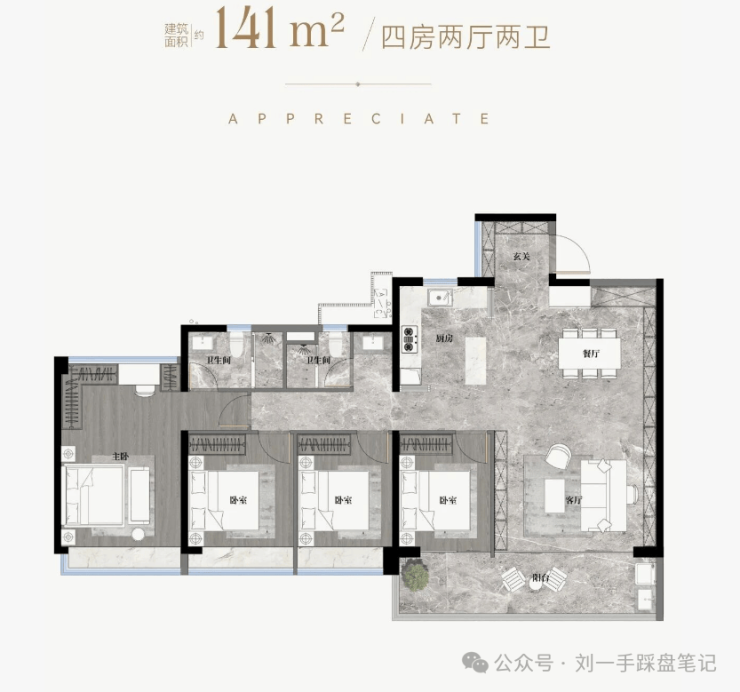 -5.9m开间巨幕客厅,主卧270°全景飘窗