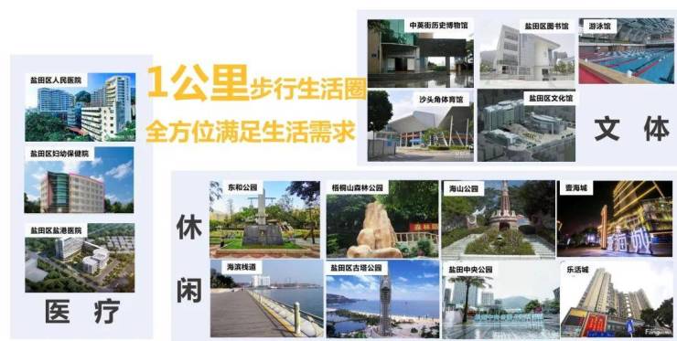 占据沙头角经济、行政、文化之心,与山海无界。畅享梧桐山、海滨栈道自然山海风光,社区通道直通东和公园,五大公园环绕;约400米直达购物天堂中英街,约600米直抵10万㎡壹海城ONE MALL,体育馆、游泳馆等贴身而立