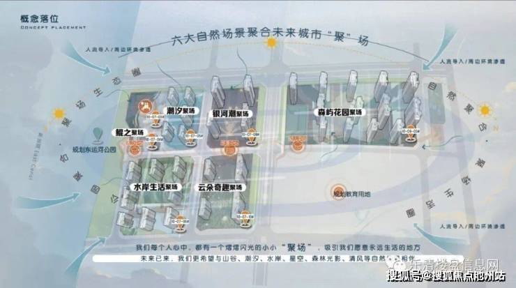 以山水相融为设计理念,结合金地玩呗2.0社区生活系统及360°健康家,融合架空层互动空间、街区景观、东运河沙滩公园(规划中)、滨海河湿地公园(规划中)等外部景观构建丰富的景观体系,打造森屿花园、银河聚场、鲲之聚场、云朵奇趣聚场、潮汐聚场与水岸生活聚场等六大生活聚场,让社区的每个人都是美好场景的参与者。