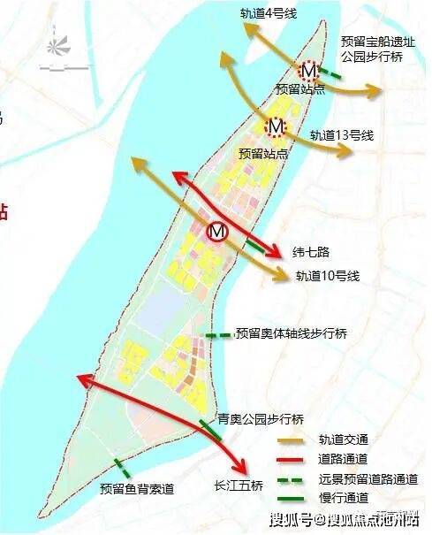 城市生态交通体系,构建1条空中走廊、3座步行桥、3条车行道、5线轨交多样化进出岛路径。