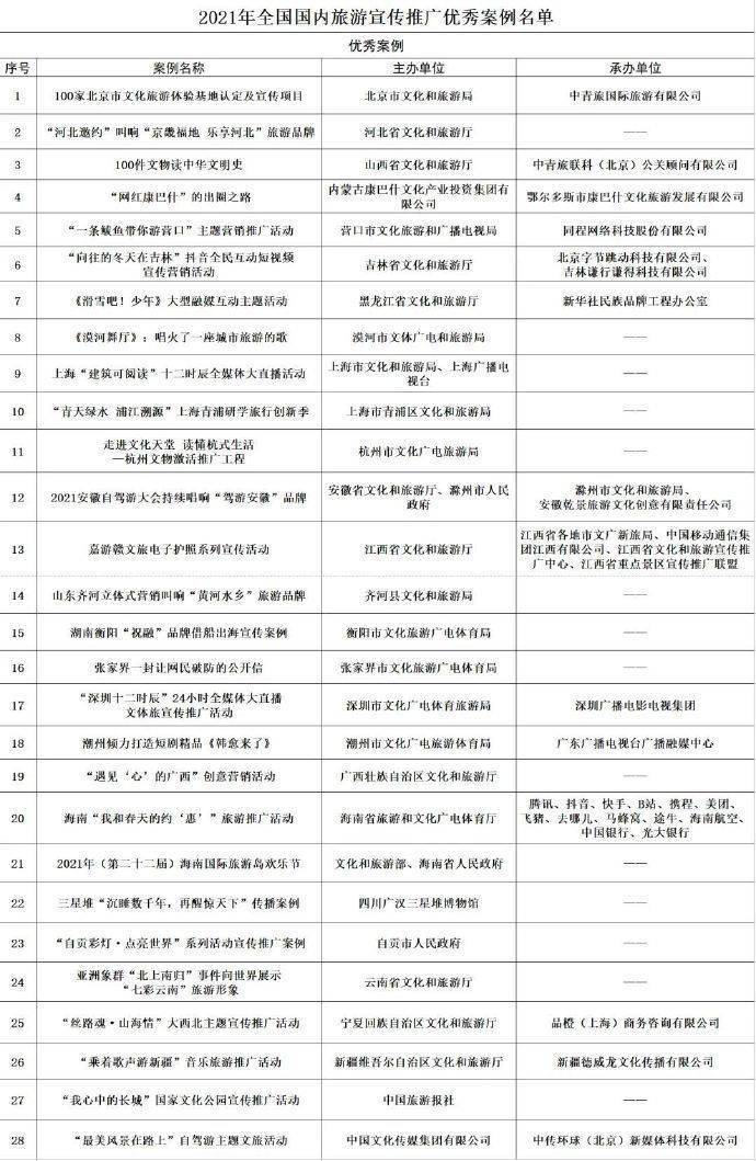 文旅部发布2021年国内旅游宣传推广优秀案例名单
