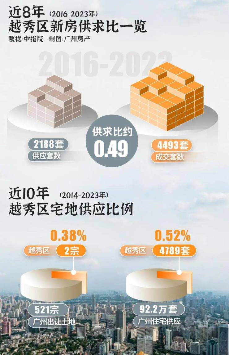 过去10年广州共出让521宗宅地,越秀只占比0.3%
