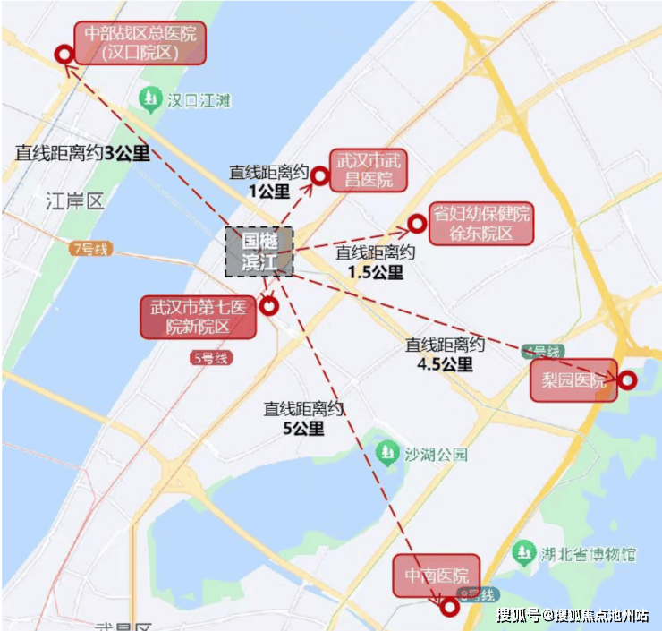 「三甲护航 呵护健康生活」项目5-10分钟车程内拥有包含中南医院、梨园医院、中部战区总医院、湖北省妇幼保健院、武昌医院等多个三甲医院,项目南边不远就是在建的七医院新院区,目前已经封顶,建成后业主看病就医也比较方便。
