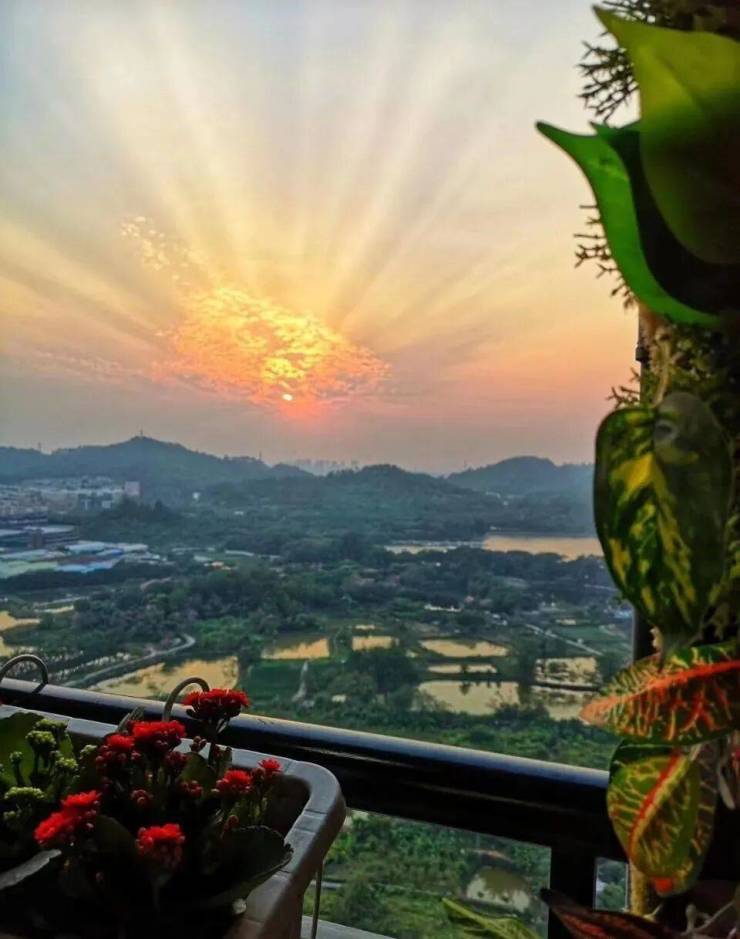 到了傍晚,尤其是雨后的傍晚,房子外面的景色尤为靓丽。