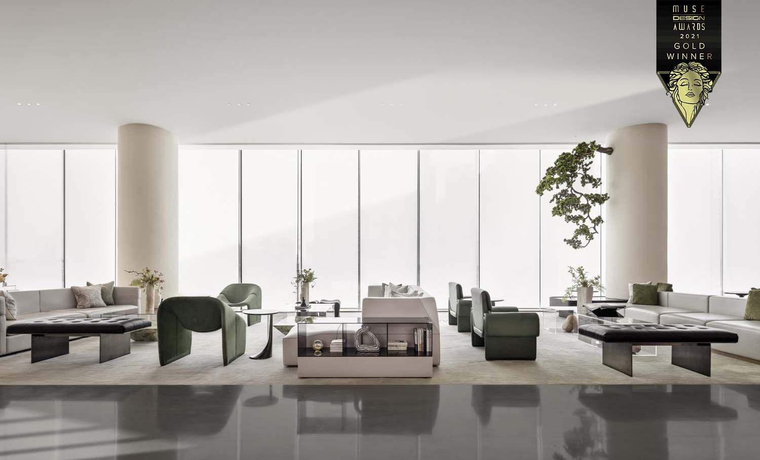 2021年4月12日,Muse Design Awards排名前列季度获奖结果揭晓,其中JLa设计之作「郑州保利福塔售楼部」赢得MUSE奖的评审青睐,获选金奖!