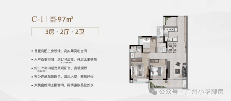 9、最小面积97方做3+1房(功能分区更合理),142方大四房不超豪宅面积。