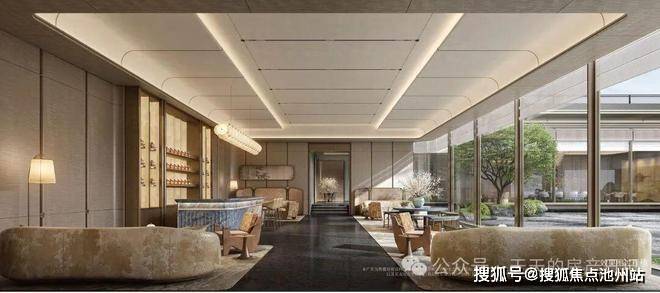 :打造低于地面的中庭水景,通过高低差形成围合式静谧空间,周边搭配连廊、叠石与水生植物,光影透过树叶洒在水面,营造 “曲径通幽、静谧深邃” 的氛围,是邻里休憩、独处静思的绝佳场所;