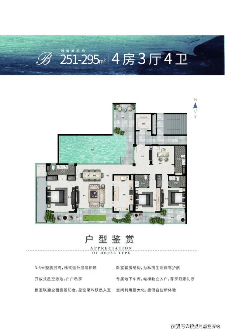 建筑面积:251-295㎡ 四房三厅四卫