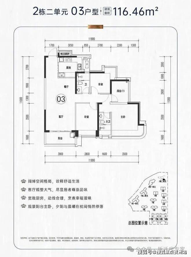 项目容积率2.6,停车超1:1,三梯四户。高层分布于1栋2单元、2栋2单元。其中112平和120平的户型是3+1房,195平的户型是4+1房。