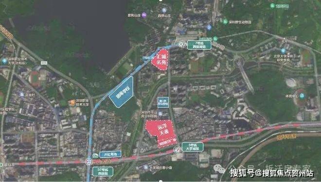 汇城茗院位于南山西丽片区,距离7号线西丽湖站不到200米,西北处紧挨着西丽湖。