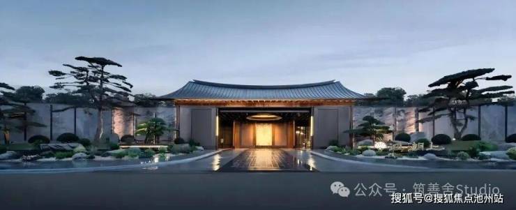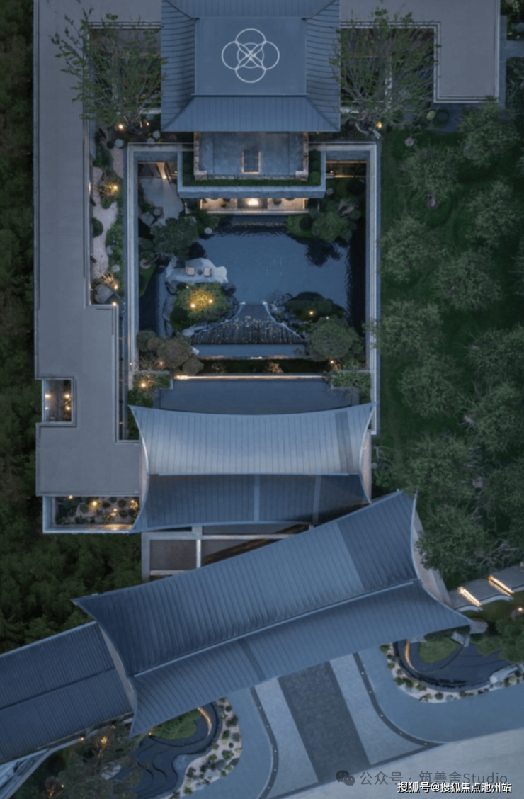 门庭中心以天圆地方造型点睛,配以大块亚马逊绿石材,形成“由隐入奢”的视觉过渡,无需知识储备,都能感受到身份认同。