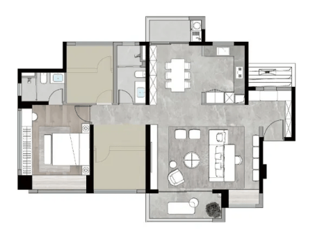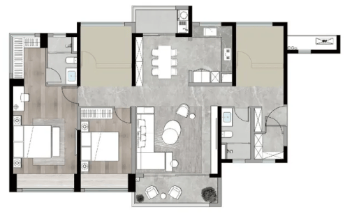 125㎡的3+1可生长居室,约6米宽LDKB方厅,双阳台南北对流。