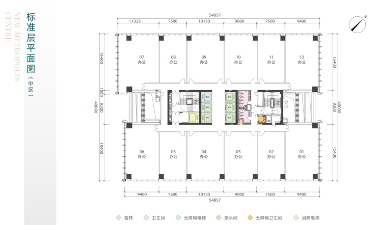 中区:16-20层,单元142㎡~全层2011㎡,管理费20元/月/平方米