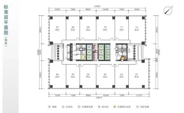 低区:7-13层,单元138㎡~全层2063㎡,