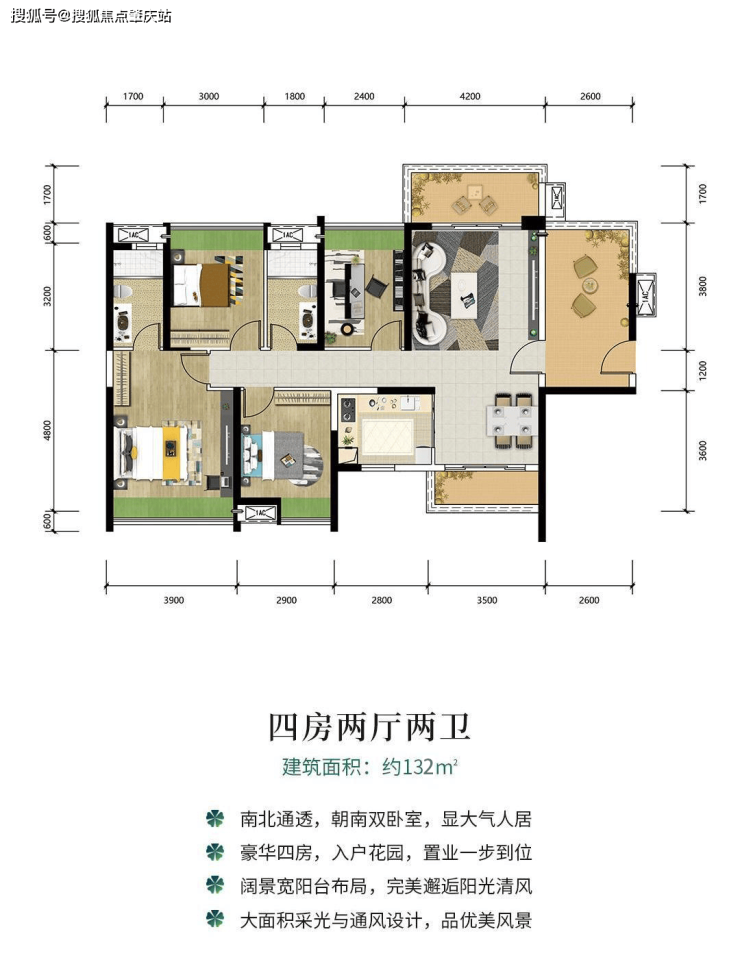 [户型]:2梯4户,3房/4房+入户花园,全部双阳台,房间全部有飘窗赠送
