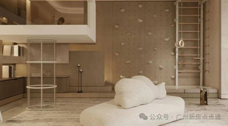 2F-起居栖心:双套房设置·步入式衣帽间行政套房·6.6米奢阔观景台;MF-娱乐空间:超5米挑高空间·定制亲子攀岩墙·跨界收藏空间;